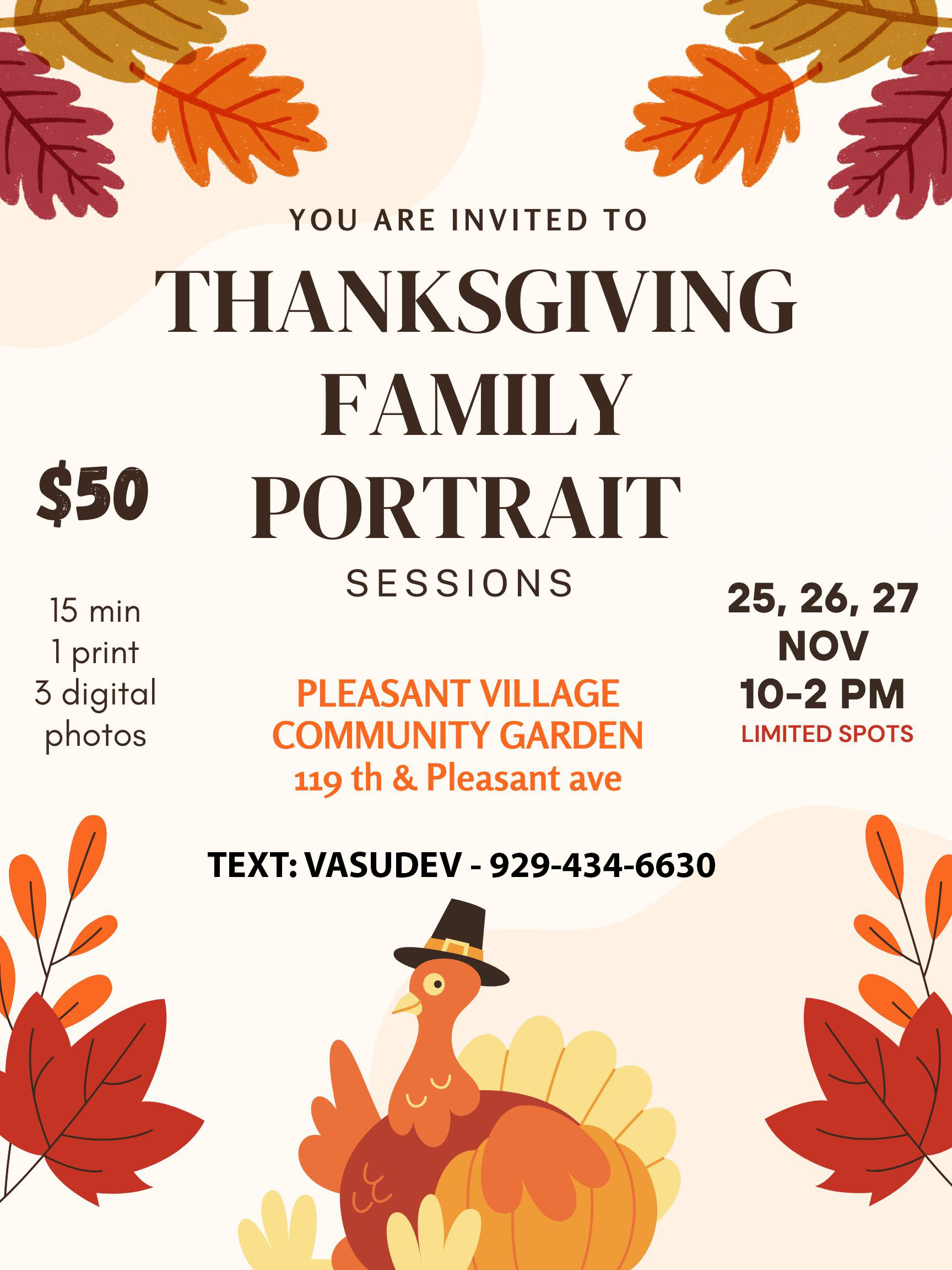 You are invited to the Thanksgiving Family Portrait sessions on November 25th, 26th & 27th between 10-2pm. Spots are limited!